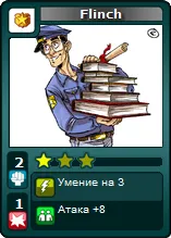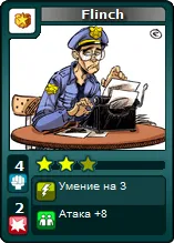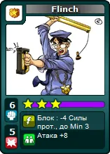 Когда Flinch вступал в ряды полиции Clint City, он мечтал о приключениях. Разочарованный, он присоединился к Sentinel: с его талантом в составлении отчетов, он полностью посвящен бюрократии клана. Но теперь это занятие выводит его из себя, и после того как он разгромил офис, Сopper решил отправить его поближе к военным действиям.