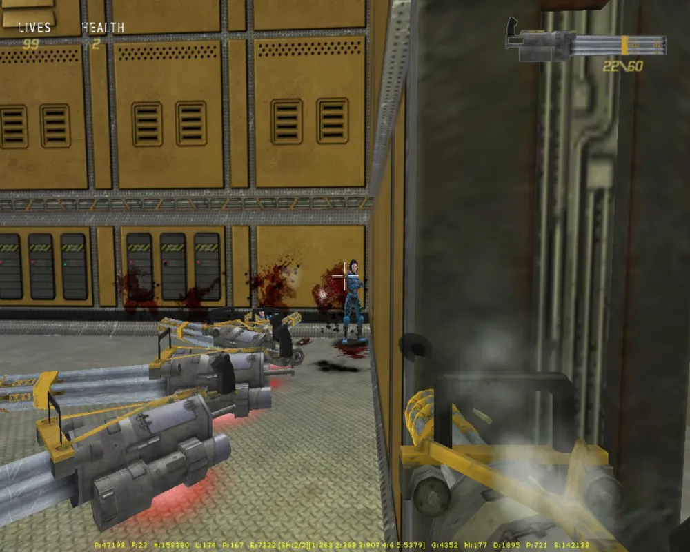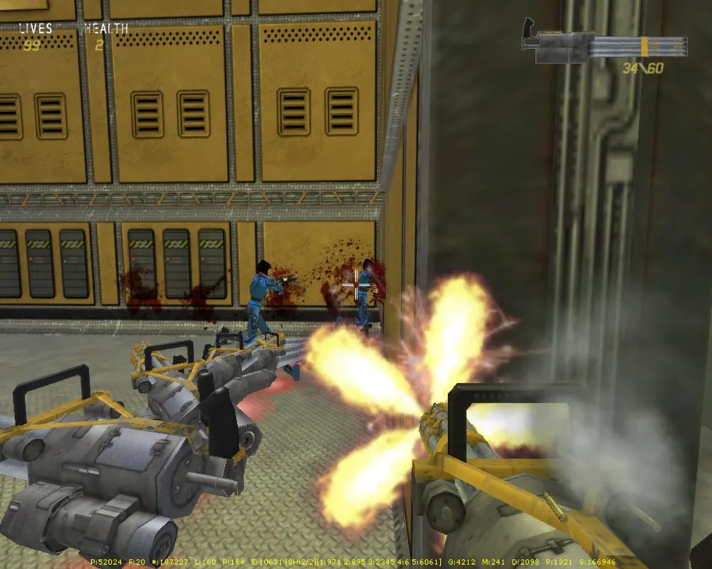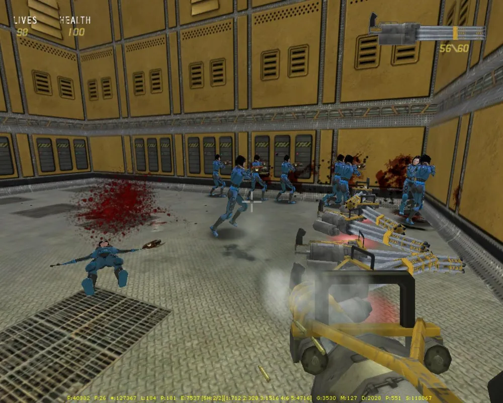 Божественная графика!!! А прыгать тут можна? если нельзя то я нерикомендую такую игру! Это рпог? Кровищи то сколько) И кто эти одинаковые люди в синих костюмах?