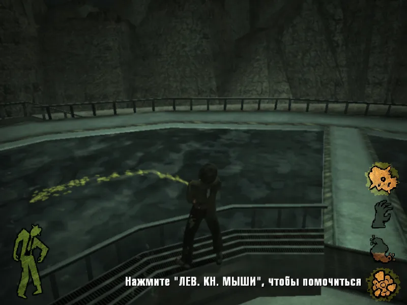 "Мне кажется, у него инсульт. Нужно понизить давление у него в голове." - говорит нам гид. И при этом нам указывают: "Нажмите Е, чтобы сожрать его мозги". "о, да! Вы действительно помогли ему. Теперь он не будет страдать. Ну да ладно, по вашему лицу видно, что город вам понравился. Пойдемте, у меня еще 640 килобайт интересной информации о Панчбоуле... И вы неплохо выглядите для человека с дырой в животе."