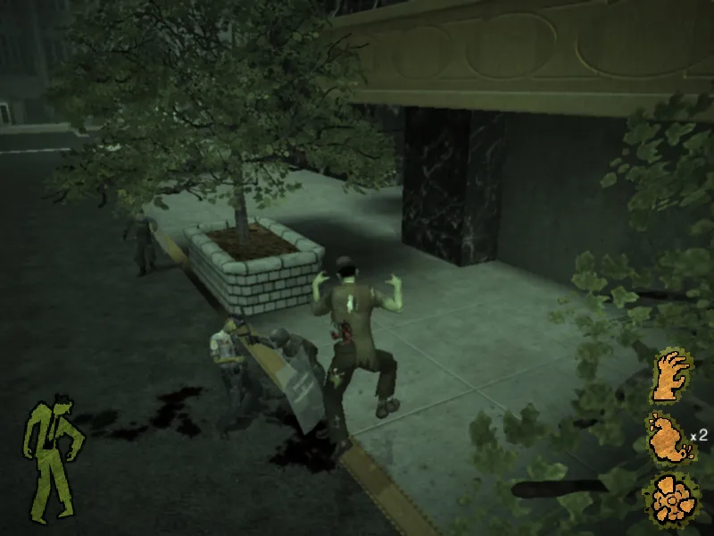 Ты думаешь, что Стаббз - глупый безмозглый жмурик? Да нет же, с его полуразложившихся мозгах еще есть иска интеллекта, которой хватает, чтобы пользоваться преимуществами гниющего тела. Например, в этом самом теле накапливается значительное количество трупного газа, который при необходимости можно выпустить и ошарашить окружающих. А еще наш герой может из свой дырки в животу вытаскивать внутренности и использовать их прямым назвачением - в качестве гранат. Кинул селезенку в толпу недругов - получи эффектный и эффективный взрыв с последствиями. Кроме того, позволяется использовать голову как увесистую бомбу (запуск наподобие броска шара в боулинге), а также отрывать свою руку и отправлять ее на поиски жертвы (можно передвигать как по полу, так и по стенам и потолку). Забравшись с помощью такой руки на голову жертвы, мы подчиняем ее свой воли. Однако главный козырь Стаббза - увеличивающаяся толпа мертвяков. Эта безмозглая толпа идиотов способна сильно помочь с нелегком противоборстве с полицией и военными. Также нам позволяют оседлать транспорт. Например, машинку, кидающуюся навозом или трактор, к ковшу которого приделаны вилы и шипы.