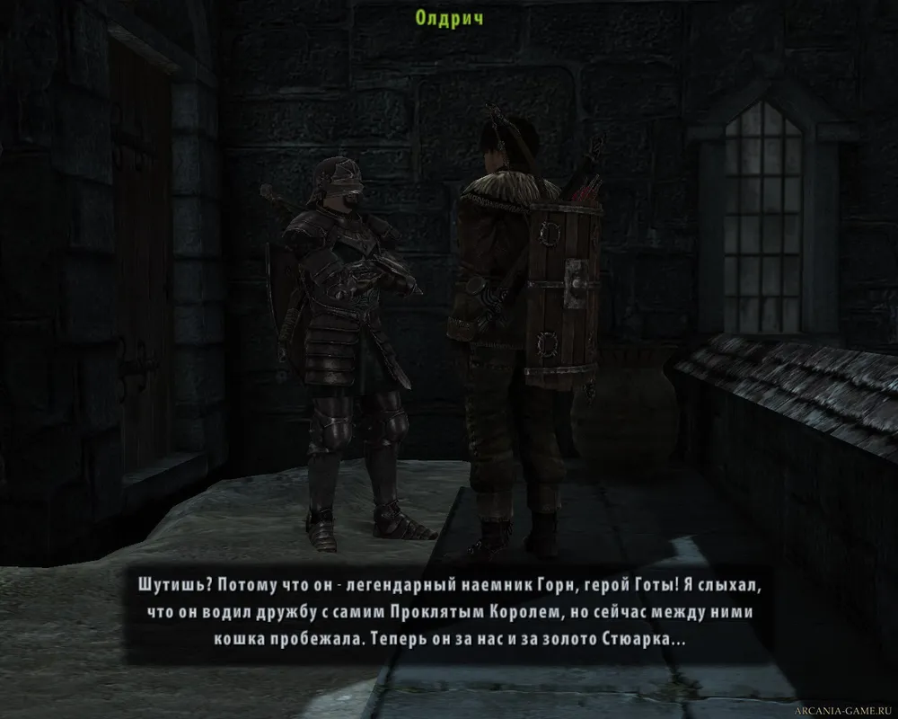 "Шутишь? Потому что легендарный наемник Горн, герой Готы. Я слыхал, что он водил дружбу с самим Проклятым Королем, но сейчас между ними кошка пробежала. Теперь он за нас и за золото Стьюарка."