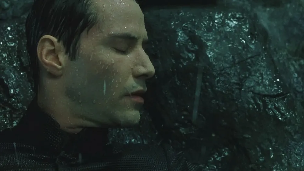 Если с вокзалом, контролем Охотников и смертью все понятно, то, как он может видеть, не имея глаз? Это тоже объяснимо, дело в том, что видит он не всё. Да-да, если вы смотрели внимательно, то Нео может увидеть лишь Бэйна и сами Машины, а так же механические постройки. Желтые линии – это провода. Бэйн – это Смит, который сам часть Матрицы. Поэтому он все видит, а вот свою возлюбленную Тринити после крушения, он отыскал только на голос, т.к. Тринити не является механическим существом или частью Матрицы.