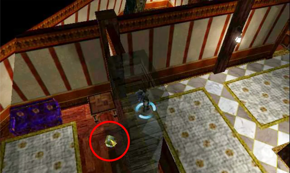 В подвале, где вы оказались (см. карту выше), врагов нет, поэтому вы сможете спокойно обойти его и собрать трофеи из контейнеров. После этого поднимитесь по лестнице. Вы окажетесь на первом этаже дворца (см. карту ниже).