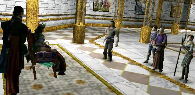 Зайдя в тронный зал, поговорите с королем. Король не в состоянии дать вам сотню рыцарей, но, учитывая, что не стоит привлекать к вашим поискам внимание врага, вам в помощь король выделит воина Джекхара.