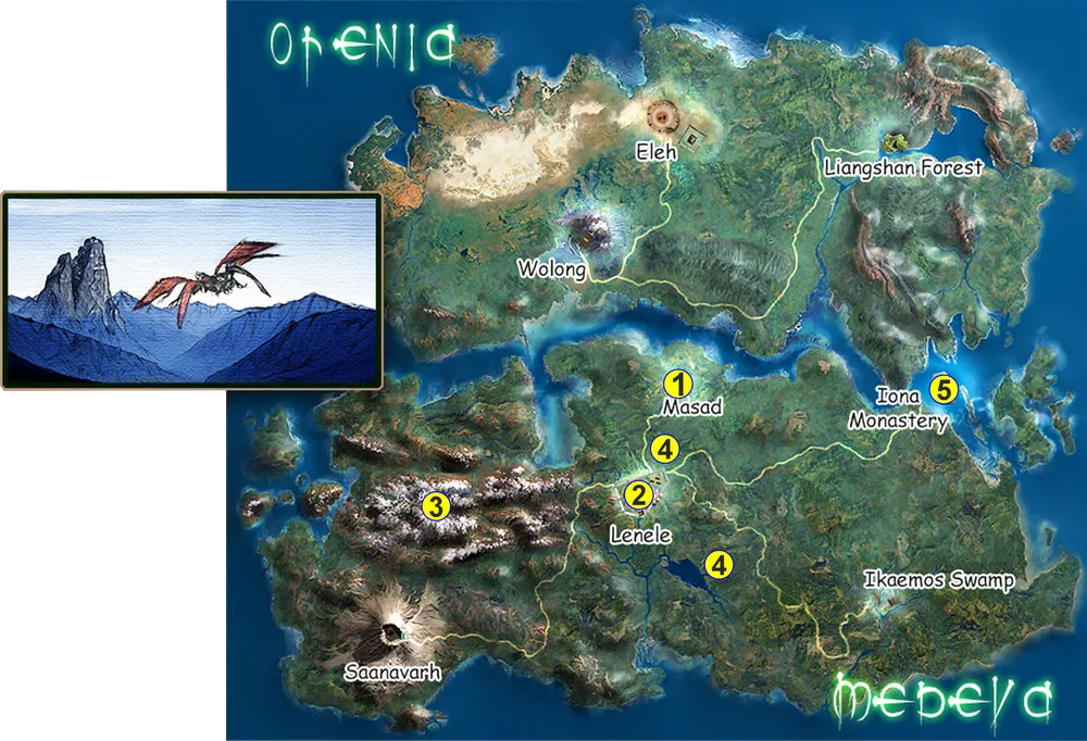 Когда вы заговорите с королевой Галиенной, она расскажет, что когда-то Мурод убил императора Гаоди II и незаконно занял трон. За это время Орения много перенесла под его тиранией, а сейчас его армии идут к Ленелу. В легендах Икаемоса король-жрец Армун применил кольцо камня, чтобы начать войну против речного бога. Это кольцо так никто и не нашел. Галиенна пояснит, что Икаемос - это павшая империя, чьи жители поклонялись речному Богу Икаемосу, который утопил эту империю в болоте. Он потребовал в жертву для себя детей империи. Армун и его подданные восстали против бога, и поэтому были уничтожены. Болота Икаемоса очень коварны и без карты вам не найти дворец Армуна. Но Галиенна полагает, что найти карту Икаемоса вам поможет принц воров Танкред.