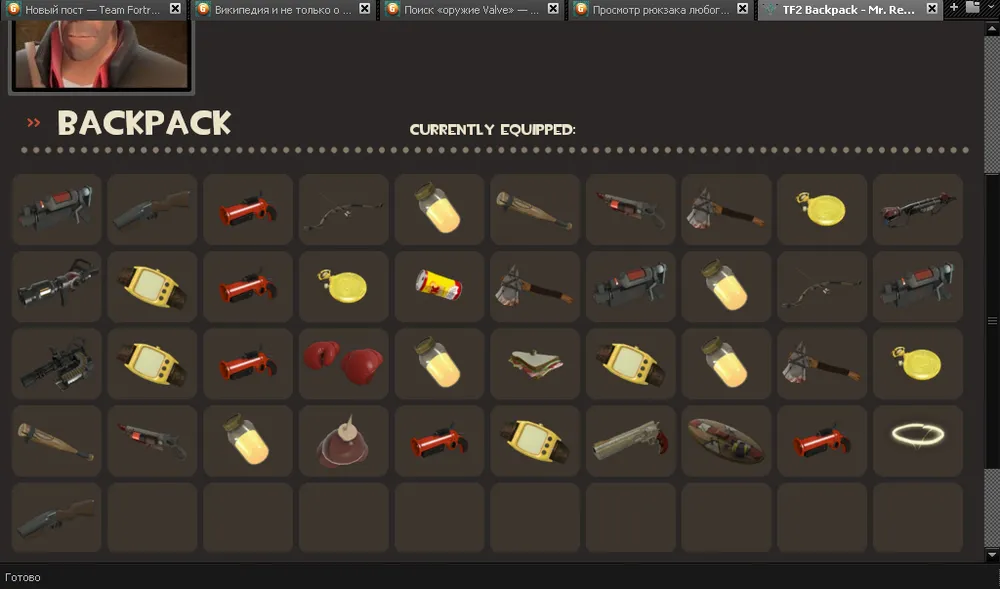 Удивлению не было предела. Ни одной из пушек выше в рюкзаке не было. Не было даже шапки хэвика, которая была одета на пиро ("Плач читеров", кстати был;)). Увы и ах, остаётся только гадать, за что даются подобные вещи. Благодарю за внимание.