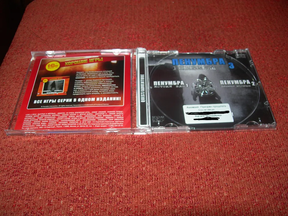 Открыв коробку я увидел там ключ активации и код тех.поддержки. Ещё там была реклама не менее страшной игры Пенумбра. Прошу извинения, за то что не показал диск. Он у меня уже в дисководе.