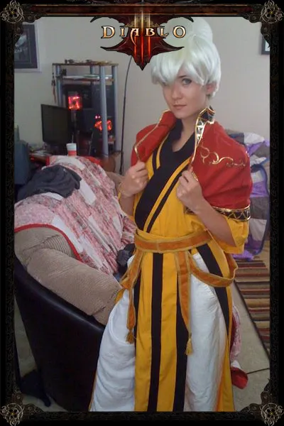 В феврале 2010-ого года Blizzard наконец анонсировали Монахиню, выложив на радость публике аж целых два концепт-арта героини: первый - в боевой стойке и легкой броне, второй - при полном параде. Сразу после анонса персонажа Кристина взялась за работу и восемь месяцев трудилась над костюмом. Сказать, что работа была сложной - не сказать ничего. Во многом успех косплея определяется тем, насколько он достоверен, насколько хороша его проработка. У Кристины в запасе подробных эскизов не было, и фактически ей пришлось сработать весь костюм по одному-единственному концепт-арту.