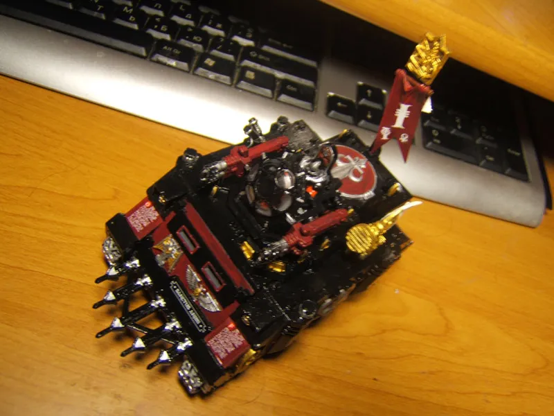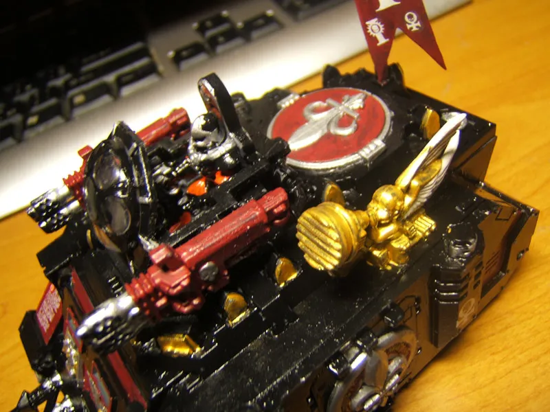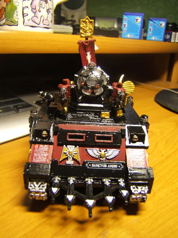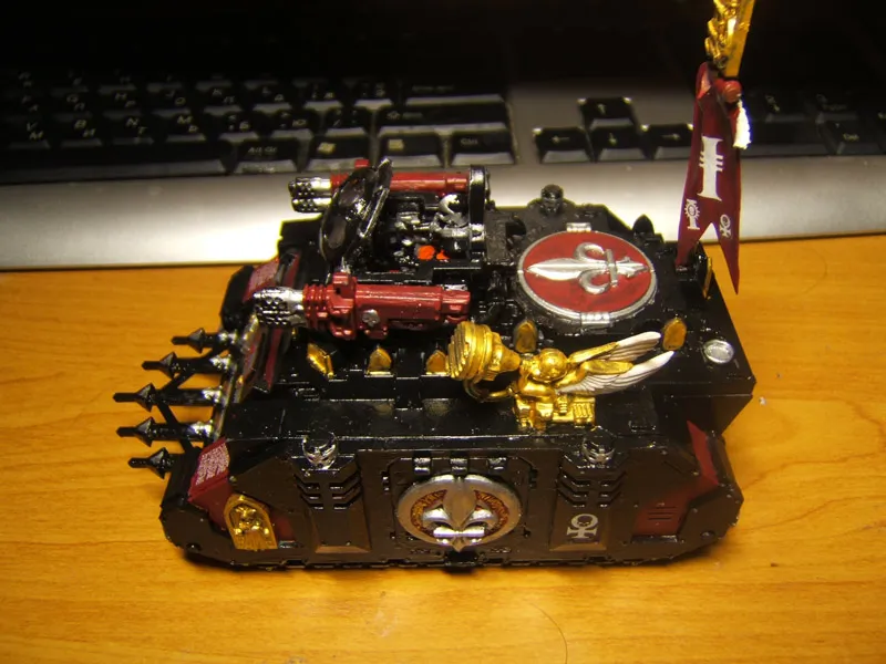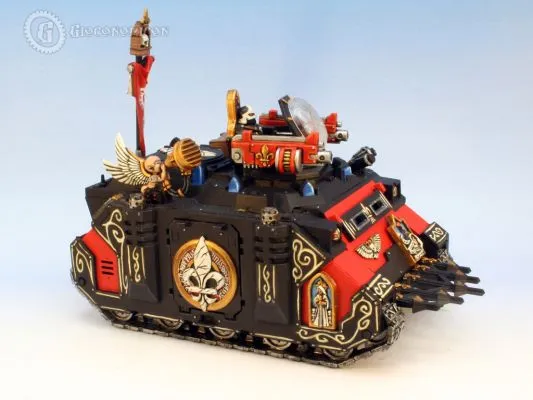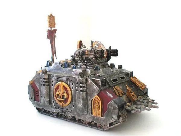 Способность перевозить до десяти Сестер Битвы быстро и с относительной безопасностью делает этот танк совершенным транспортным средством для развертывания отрядов по всему полю битвы.