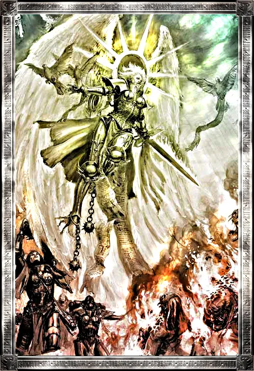 Когда тело Целестины положили вместе с прочими с честью павшими, ее сестры заметили, что жизнь все еще теплилась в теле святой. В глазах ее они узрели свет, что отмечен был божественной волей Императора, и с благоговением приблизившись, сестры омыли тело воскресшей от крови и грязи битвы.