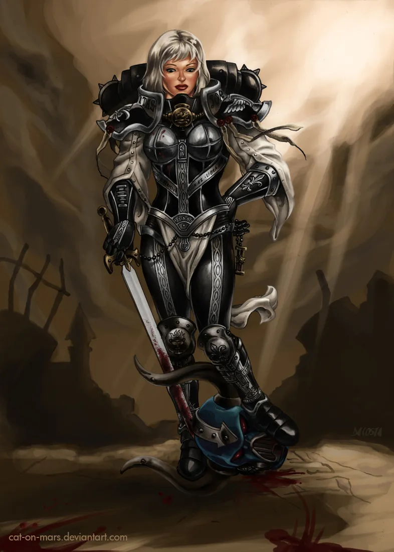 Орден Нашей Леди Мученицы, переименованный после того как их Канонисса Святая Кэтрин была предана мученической смерти в 36-ом тысячелетии, особенно известен безжалостным мстящим духом его Сестер Битвы.