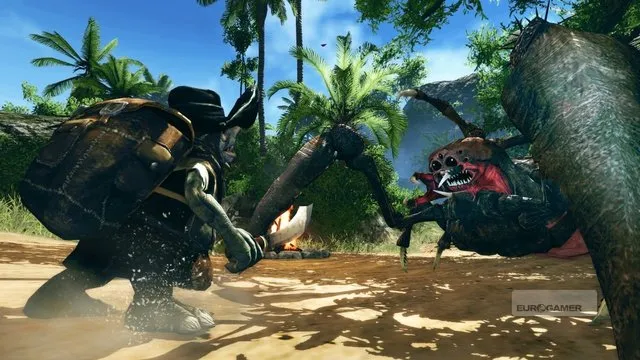 Мы не в курсе, как все у него там с пиратами вышло, потому что наша демка это все перепрыгнула, и мы в итоге сразу оказались высаженными на необитаемый остров. Видимо, без нашего чуткого руководства Герой совершил удивительную ошибку и доверился пиратам. Ну это примерно как попросить Чарли Брукера сочинить тебе панегирик.