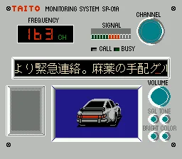 Что еще интересно, что во время импровизированного приема задания через приемник-рацию – звучит настоящий голос. На японском языке. И бегущей стройкой, крупным шрифтом идут иероглифы через весь экран. Бояться не стоит остальное все – на английском, а голос и показанные иероглифы – не так важны для игрового процесса. Сначала звучит приятный женский голос. А затем наше альтер-эго мужским бодрым голосом говорит “екай!” (“понял, приступаю к исполнению”, ”принято!”) Примерный перевод бегущей строки: “Это Нэнси из Chase H Q. У нас экстренная ситуация”.