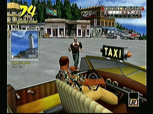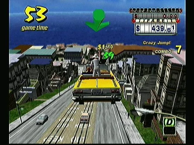 Квартет канареечных кабриолетов привязан к хозяину и различается только внешним видом. Так что выбор, кому крутить баранку пылесоса – дело сугубо идентификационное и на процесс не влияющее. Все равно будешь гнать преимущественно по тротуарам, сбивая потенциальных клиентов, да по газонам среди тележек с хот-догами. Полиция спит, поди не Need for Speed. Кроме суицидального безумия аркадного режима CT предлагает всего один геймплейный пункт в меню – Crazy Box. Тут виртуальных извозчиков заставляют выполнять всяческие трюки, больше подходящие жителю соседнего квартала – Тони Хоуку. Прыгнуть на 150 футов с трамплина или довезти пассажира по особо запутанной трассе – таких заковырок на игровых автоматах не было, потому «коробка» получилась слегка искусственной. Пожалуй, единственная ее реальная цель – воспитательная. Ведь в процессе выполнения чудес на виражах разучиваешь все необходимые для побед над таймером финты.