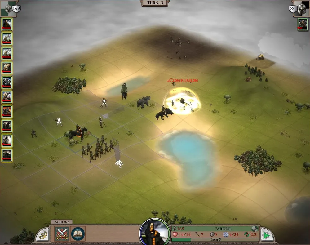 Когда я вчера наконец-то добрался до тактических битв, игра жутко тормозила и особо разбираться мне уже даже не хотелось. Но сегодня вышла обнова 3-С, поставил ее и прямо таки ахнул. Никаких тормозов. Ни на стратегической карте, ни на переходе с нее на тактику, ни в тактике. Все так плавно идет, что аж приятно смотреть. Вместе с этой заплатой вышло также еще немного новых заклинаний. Но мы здесь не совсем за этим. Интересуют нас бои. Они, видимо, очень далеки от конечного результата, но вот что мы видим сейчас.