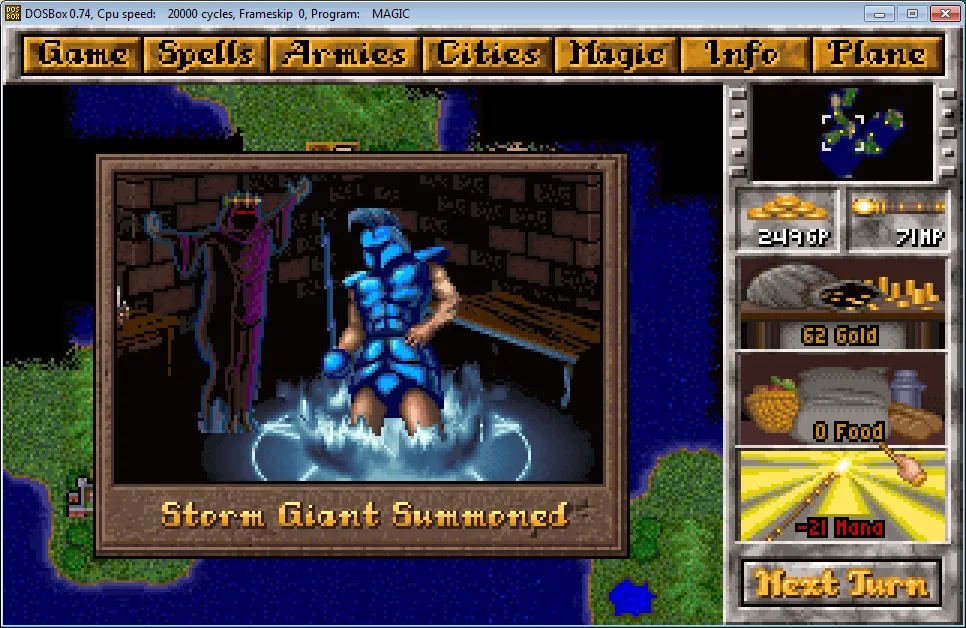 На форумах описано прохождение игры с 9 синими книгами, Sorcery Mastery, Conjurer. Игрок вызывал нагов, которые расползались во все стороны по одному отряду и нападали на все подряд при поддержке Phantom Warriors. Если с первого раза выиграть бой не удавалось, он продолжал посылать по одному отряду нагов, и они брали измором.