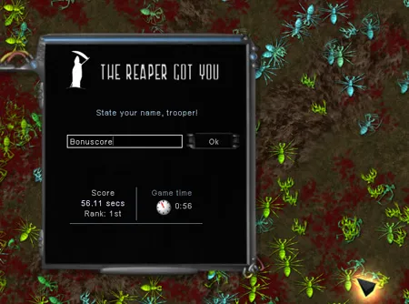 1 секунда. Игра началась. Бежим в нижний левый угол отстреливая появившихся пауков, стоим там и отстреливаем их примерно до...