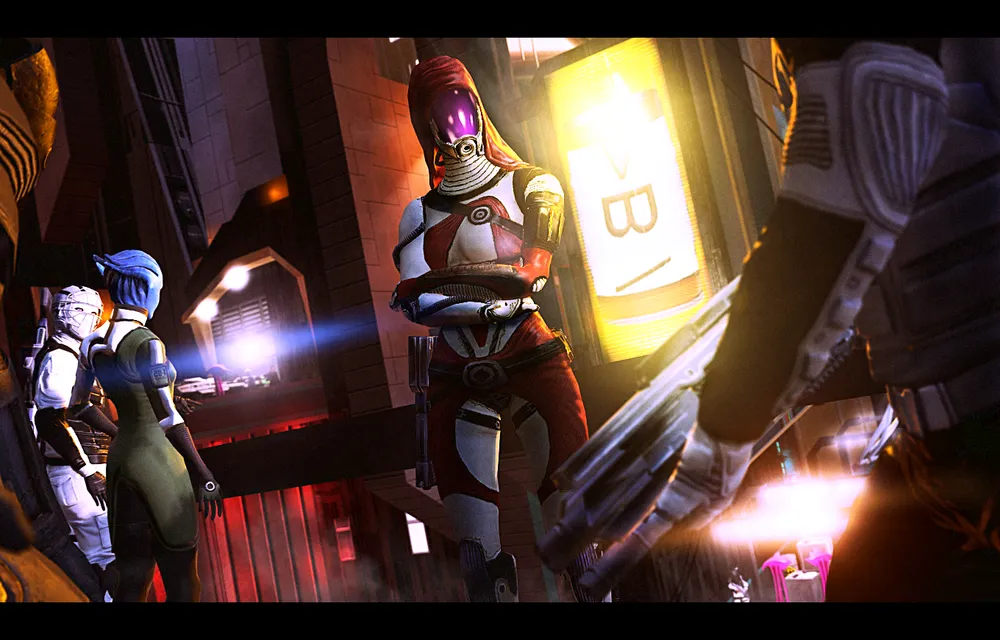 Доктор свела её с местным агентом Посредника – Фистом, но он уже к сожалению был куплен Сареном. Она пришла на место встречи указанное Фистом в надежде повстречать Серого Посредника лично, но вместо этого Тали встретила группу наемных убийц.