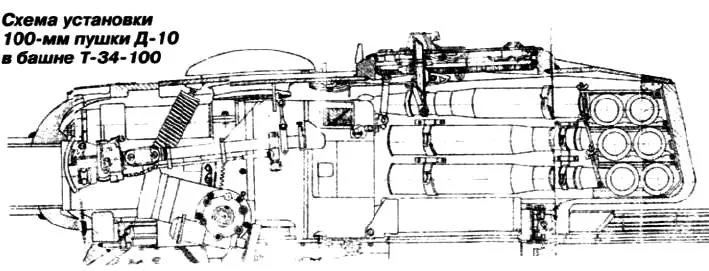 Компоновка этого танка по сравнению с танком Т-34-85 обр. 1944 г. была изменена незначительно: убрали место пулемётчика. Сиденье механика-водителя выдвинули вперёд на 140 мм и опустили на 70 мм. Топливные баки перенесли из боевого отделения в отделение управления и трансмиссионное отделение.