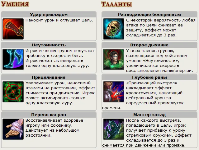 Стрелки - непревзойденные мастера дистанционного боя, которые эффективно используют луки и ловушки. Также они сражаются кинжалами и используют знание местности для быстрого перемещения — чтобы нагнать врага или уйти от слишком уж агрессивной мишени.