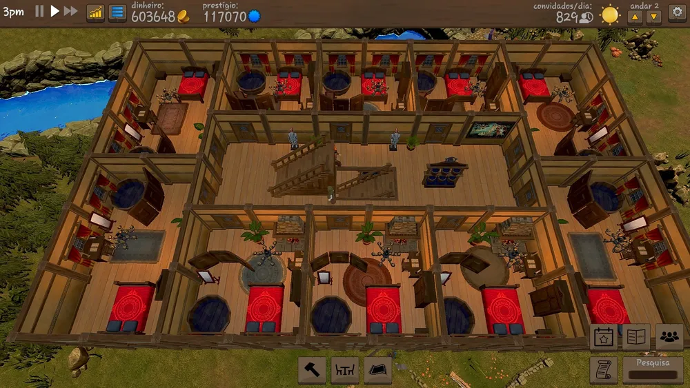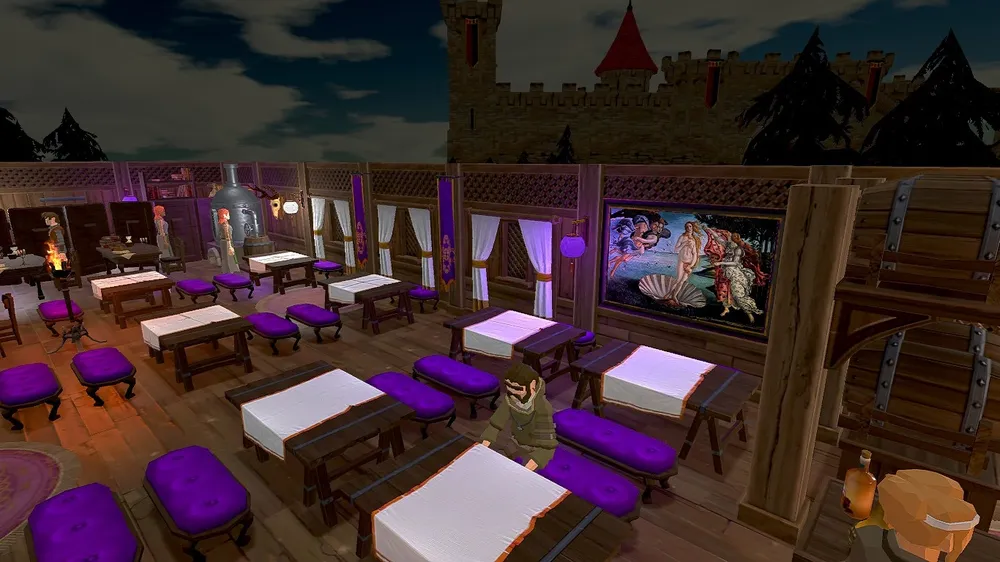 Через несколько часов активного развития вам будет доступен отель, который вы сможете построить и обустроить на втором этаже. Самое выгодное и уютно выглядящее вложение в таверну. К услугам гостей — трескучий камин, шёлковые постели, шкафы с фолиантами.