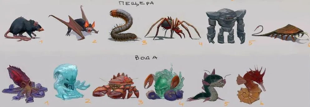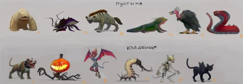 На конференциях часто спрашивают, какие петы будут. Многих этот вопрос очень сильно волнует. Поэтому решил начать потихоньку показывать питомцев, которых вы сможете приручить. Если кто читал одну из первых сказок на ночь, те помнят, что все петы разделены на стихии, которые находятся в балансе друг с другом. Сегодня можете посмотреть, какие есть петы пустыни и кладбища, пещера и вода.