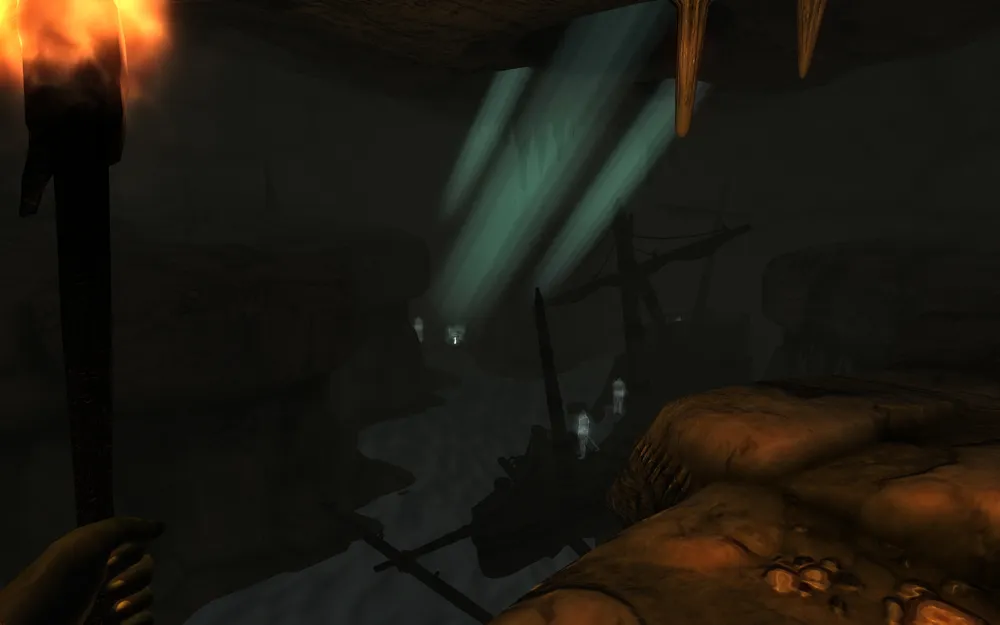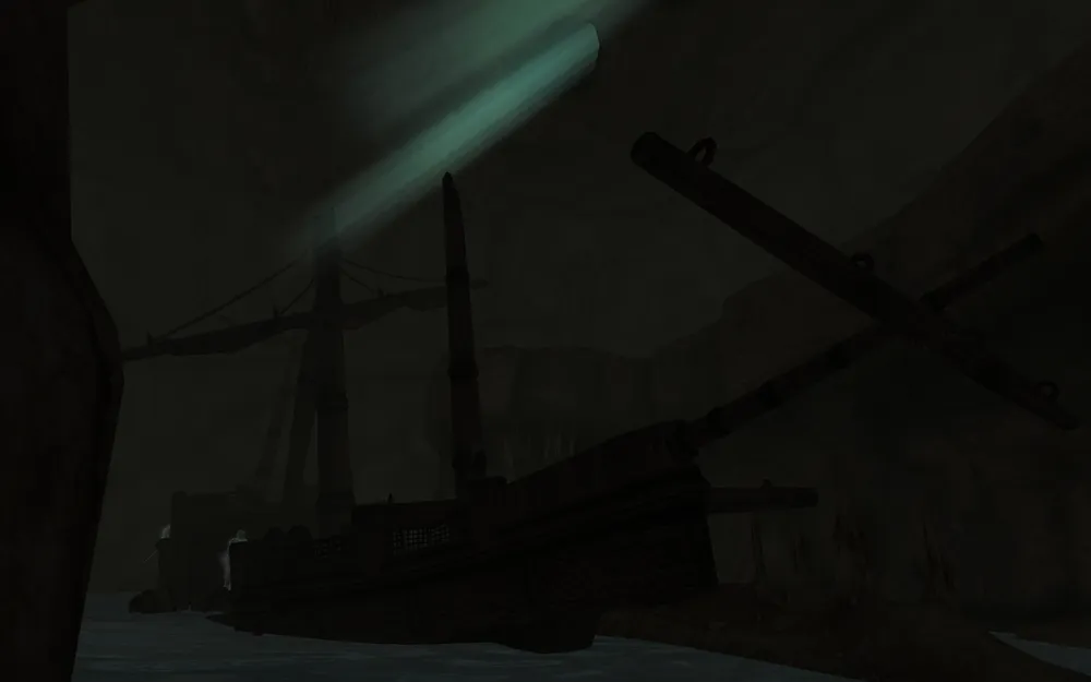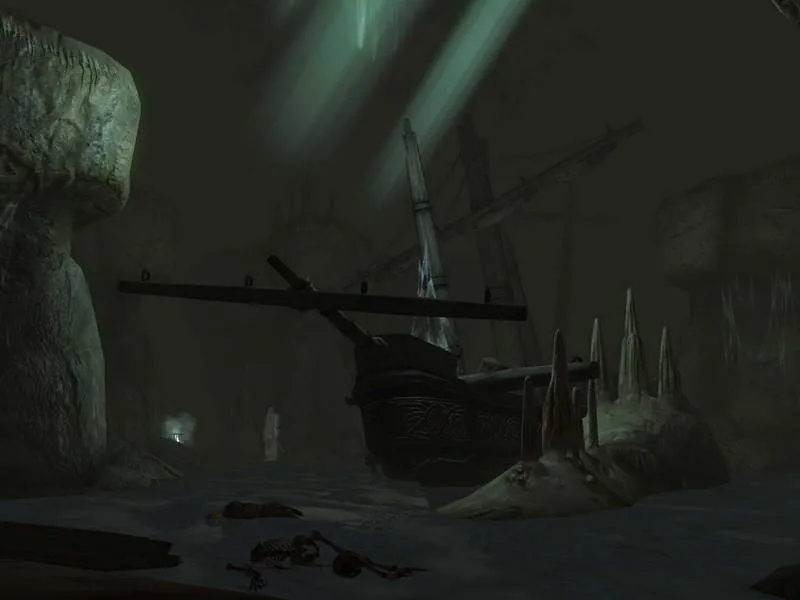 Там, в секретном подвале, в узком извилистом коридоре лежат скелеты и тела бандитов. Откройте переключателем (на этот раз — материальным) каменную дверь и будьте очень осторожны. В огромном гроте лежит разбитый корабль, древний и опасный. Его стерегут несколько призрачных пиратов. Они исключительно опасны, но это лишь глупые привидения. Их можно победить силой оружия, магии, призванных существ и нескольких эликсиров здоровья.