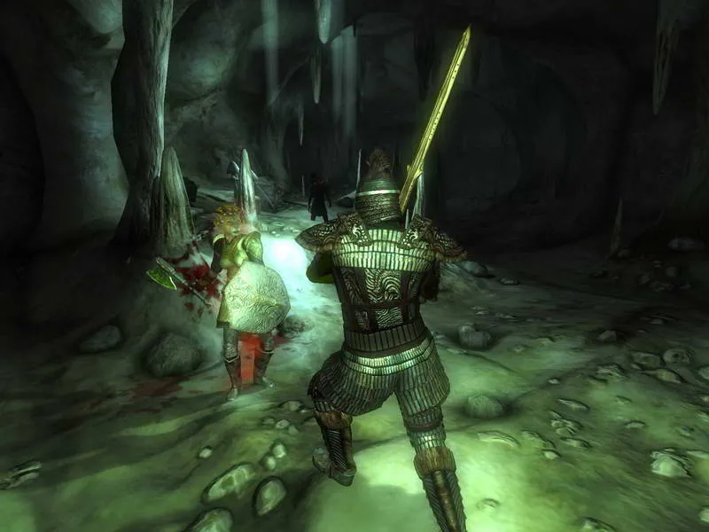 Поверните его — и с тихим шелестом он исчезнет, оставив после себя лишь голую скалу. Выход из пещеры закрылся огромным камнем, сдвинуть громаду с места невозможно. К счастью, есть другой выход. Вы уже чувствуете подвох? Вас ведут именно туда. Приготовьте зачарованное оружие и мощные заклинания, ибо снаружи вас ждут два сильных призрака. Это пираты, они сражаются изогнутыми саблями.