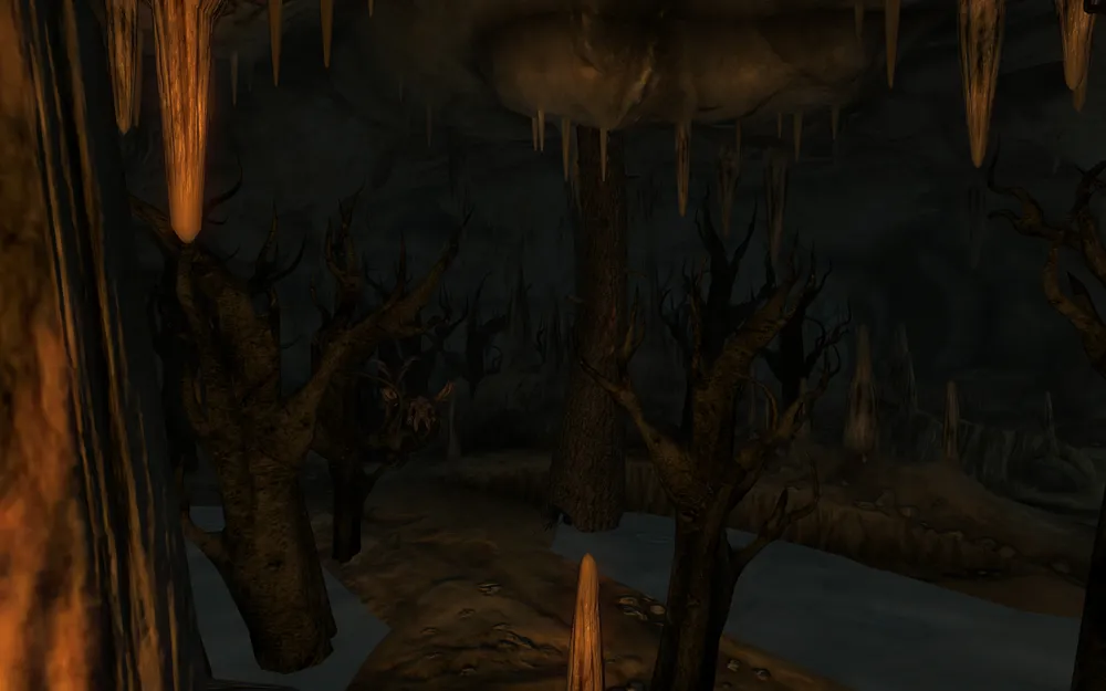 Атлантида и Китеж-град в одном лице. Как так случилось, что не корабль, не занюханный лич, а целое подземелье оказалось спрятанным в пещерах? Что даст нам ключ к разгадке тайны? Может, эти огромные корни растений, которые опутали все вокруг. Или наполовину вросшая в стену статуя даэдры Меридии?