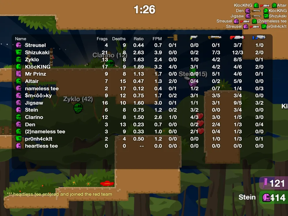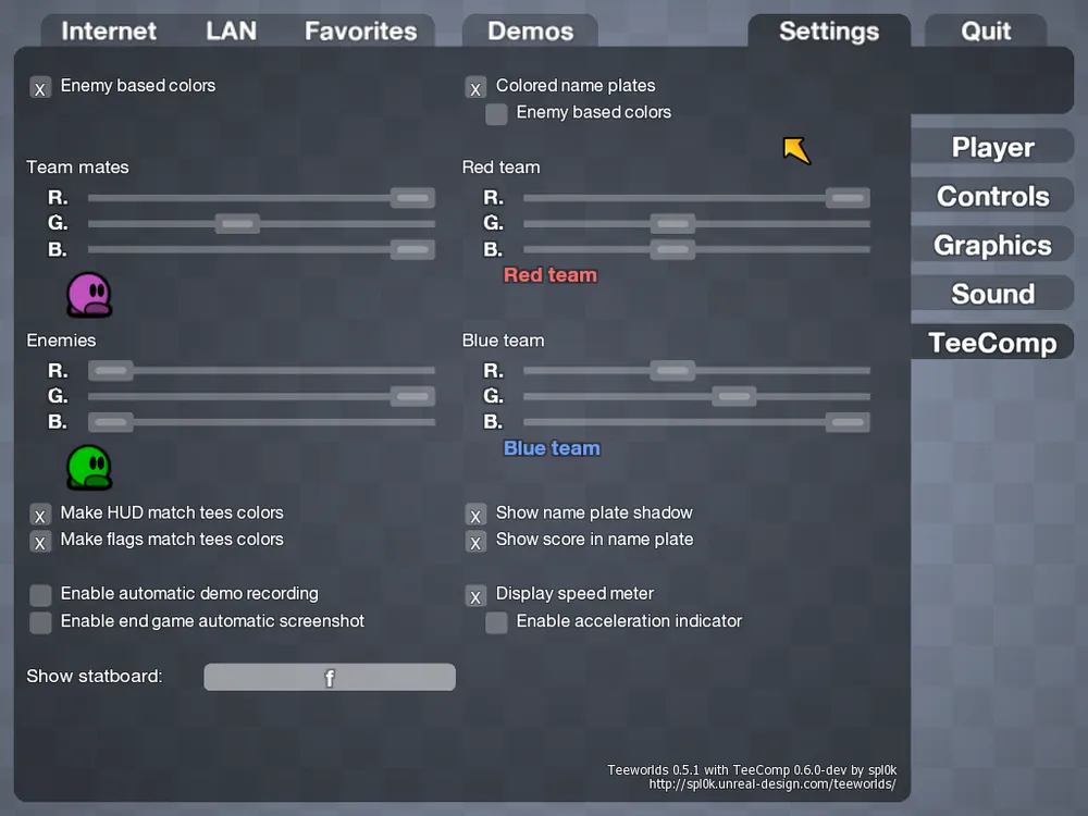 Этот клиент позволяет менять цвета команд, табличек ников над колобками, флагов, ставить автоматическую запись демок или скрин в конце игры, а также выводить на экран статистику по всем игрокам нажатием одной кнопки. И это еще не всё.