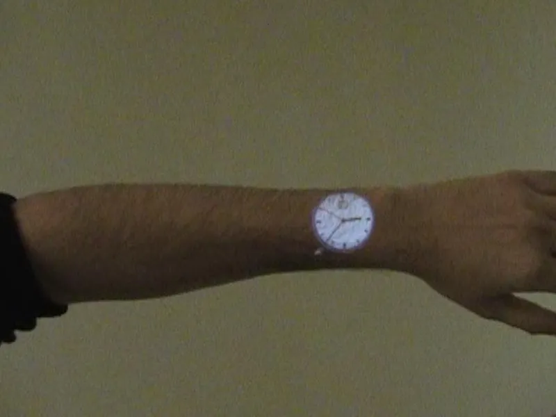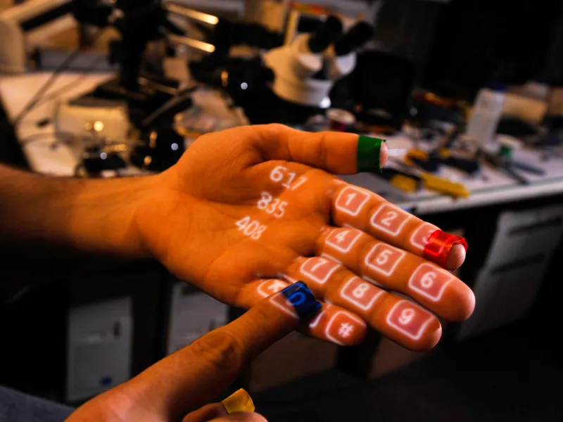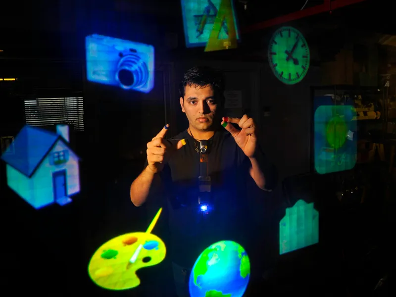 Опытный образец был построен им из обычной веб-камеры, проектора с пристроенным к нему зеркалом и мобильного телефона. Вся система SixthSense обошлась в 350 долларов. Это чудо современной техники позволяет пользователю проецировать информацию из телефона на любую поверхность - стены, мебель, книги, тело другого человека или просто на ладонь.