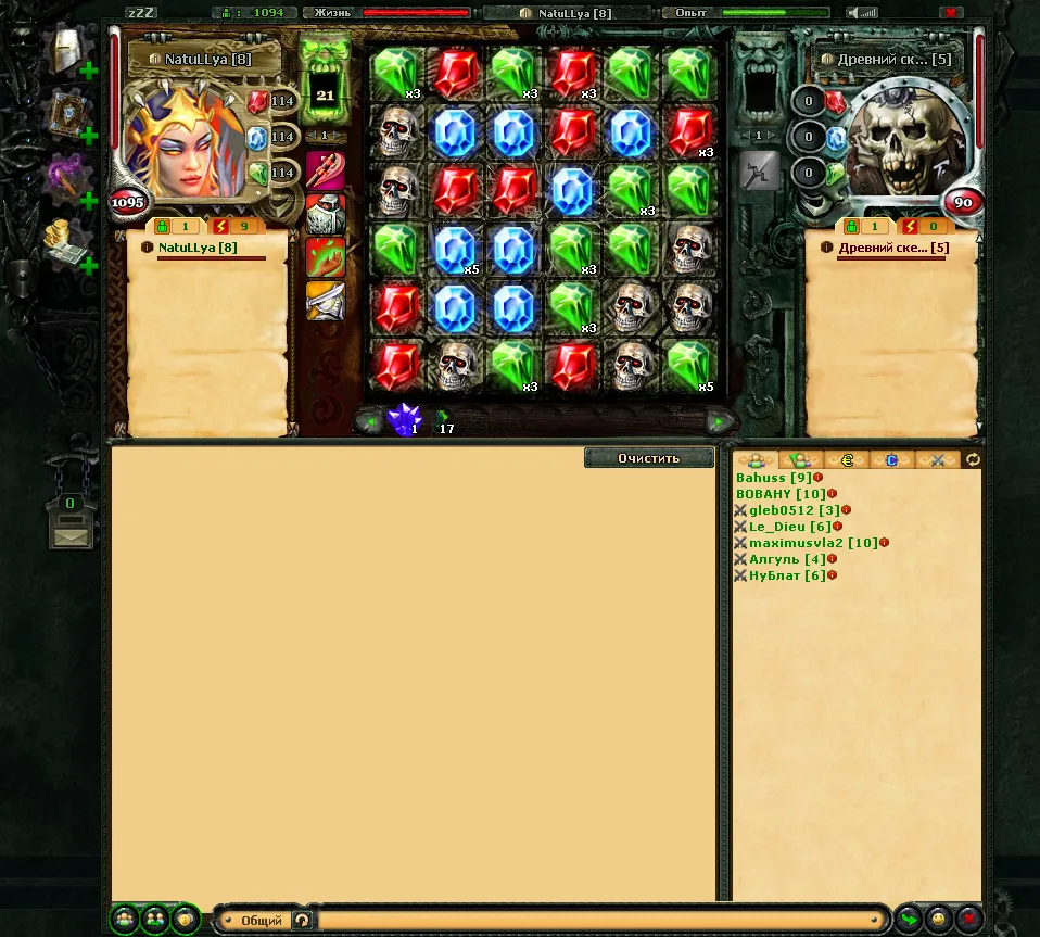 Разбирая и накапливая в этой мини игре собранные камешки вы получаете возможность наносить удары и произносить заклинания, увы камни не сохраняются и в следующем бою все придется набирать по новой. Кроме того есть независимые свитки\эликсиры\сферы - наносящие урон при непосредственном их использовании и не зависящие от мини игры.