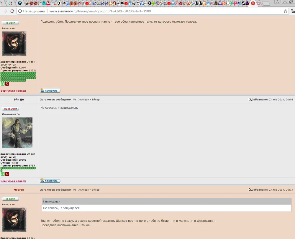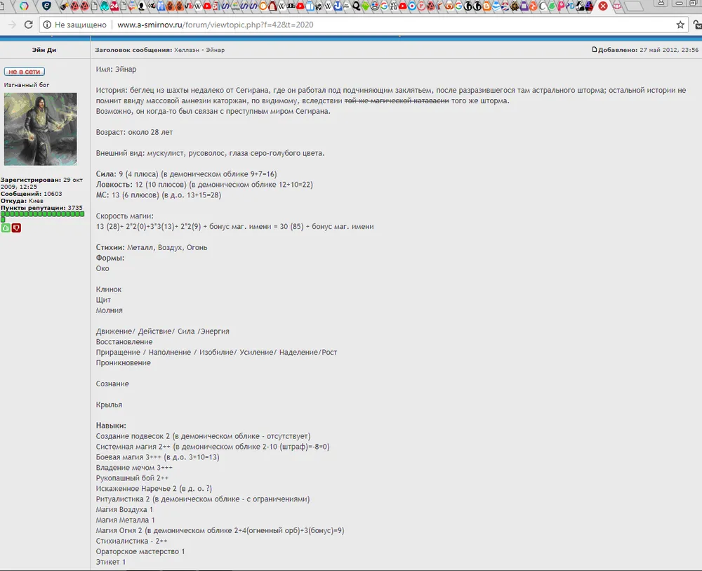(3-4) Пример игры за персонажа, которая длилась около двух лет и закончилась смертью персонажа (см. даты создания первого сообщения с картой персонажа и последних).