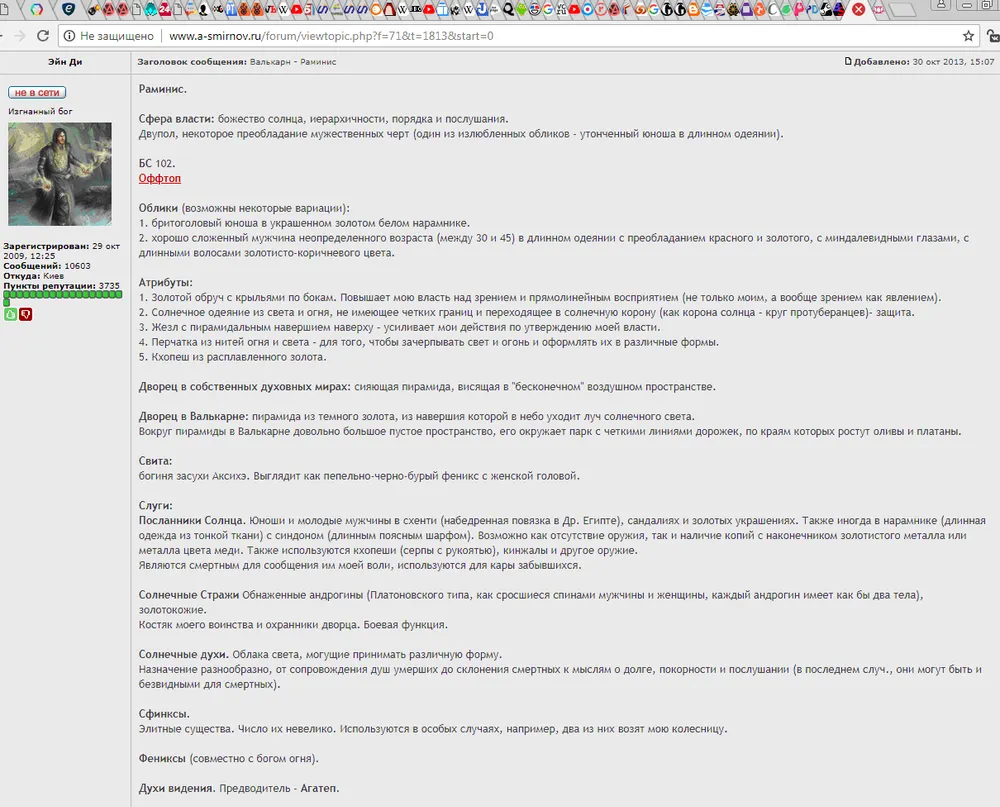 (1-2) В текстовой ролевой игре в каких-то случаях в качестве своего персонажа можно выбрать божество. В этом примере это Раминис, божество солнца, появившееся среди богов первым (см. мифологию).