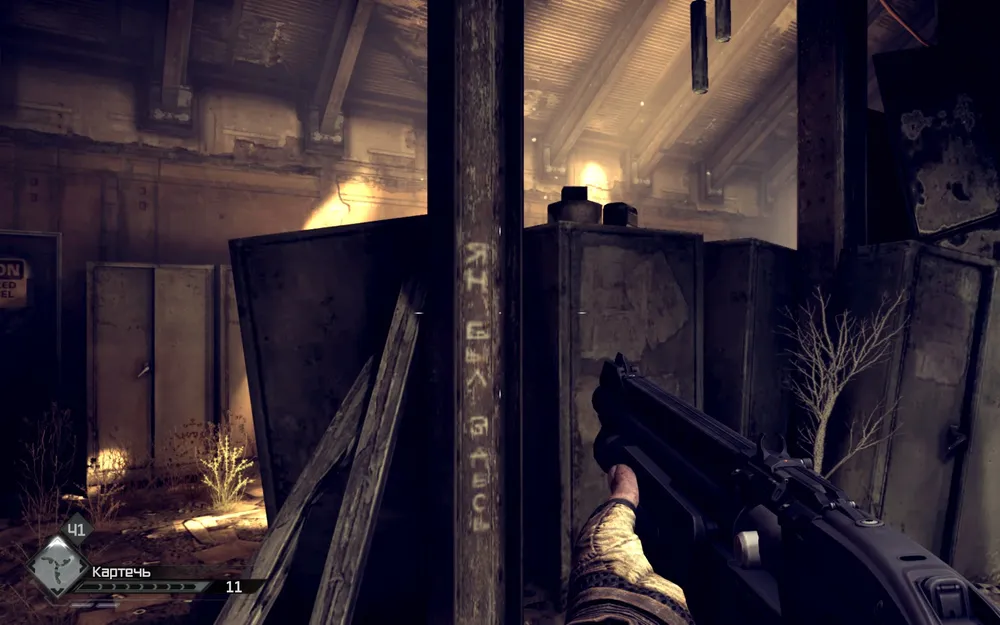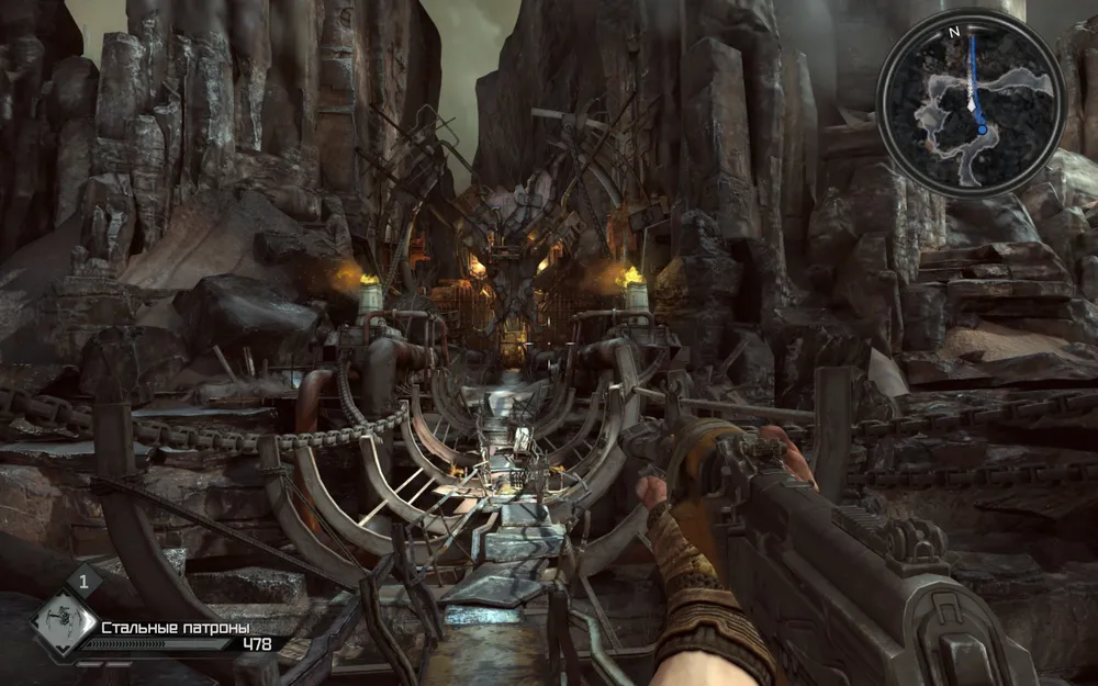 Rage – самое масштабное творение id, в этом ей не откажешь. Шутерная часть обогатилась псевдо-RPG системой, с деньгами, инвентарем, крафтом, побочными миссиями и апгрейдами. По последним веяниям моды регенерация автоматическая, но шкала здоровья незримо чувствуется: помимо увеличения ее снадобьями, здоровье можно восстанавливать аптечками (бинтами), можно вкалывать дозы адреналина и усиленной регенерации. И, чтоб наверняка, есть здесь узаконенный чит под названием дефибриллятор. Если игрок умирает, запускается мини-игра, при успешном исходе которой врагов вокруг долбит электрическим разрядом, а герой воскресает из мертвых. Только пожалуйста, не повторяйте моих ошибок: дефибриллятор воскрешает только если тебя убил противник. А если в финале большого подземелья, после десятка-другого перестрелок, тебя давит лифт – извольте загружаться с чекпоинта, которые расставлены только на экранах загрузки между локациями. Да, в этом геймплей Rage заставляет вспомнить старые времена: сохраняться надо вручную и почаще.