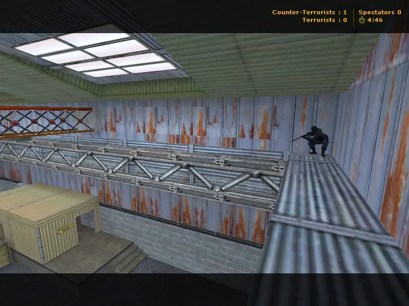 Прострел жестяной балки, с которой так любят смотреть будку некоторые несознательные граждане. Все сознательные уже поняли, что это одна из самых опасных позиций и не спешат занимать её в начале раунда.