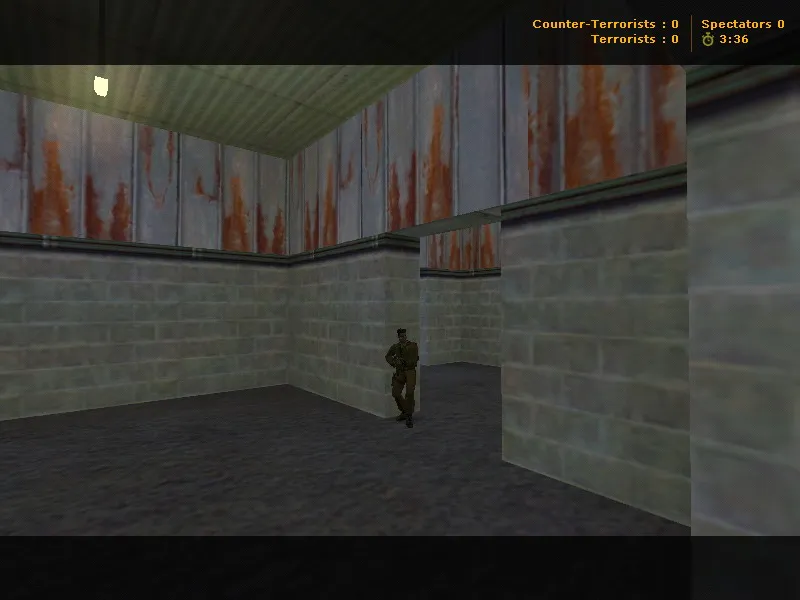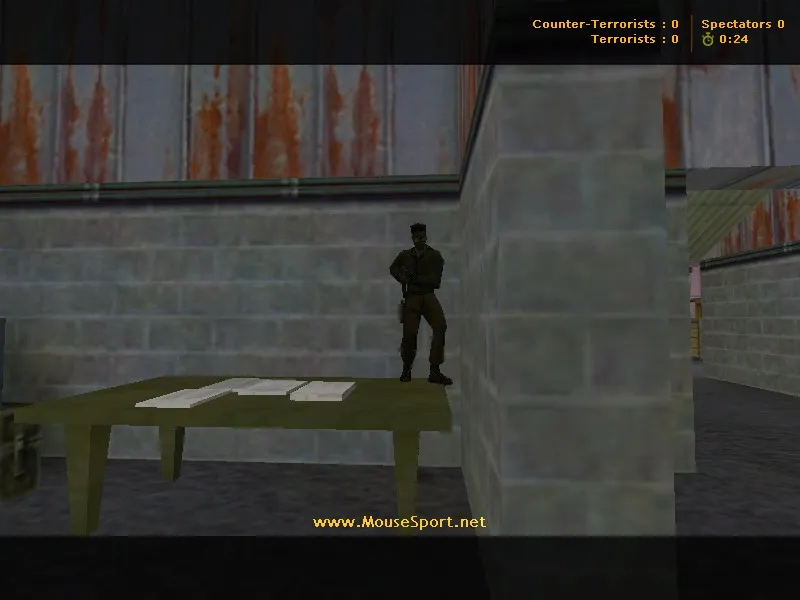 Отучив террористов ставить бомбу “на улицу” (единственным возможным путем научить чему-то 5-рых одинаково одетых, небритых мужиков, является, конечно, путь силы), можете быть уверены – они начнут ставить бомбу в сторону скворечника. Опять же, пользуйтесь ситуацией и убивайте, будучи невидимыми. Данный прострел очень эффективен в сочетании с прострелом бомбплэнта А с нижнего плэнта (Б). Почти всегда, можно определить время возможной постановки бомбы с интервалом в 5-10 секунд. Потому, пара магазинов, выпущенных в стену, могут решить исход раунда. Но не забывайте о прикрытии улицы в момент прострела.