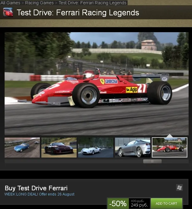 В Steam очередная акция и очередная возможность купить за недорого игру Test Drive: Ferrari Racing Legends. До 26 августа игра доступна с 50% скидкой за 249 рублей.