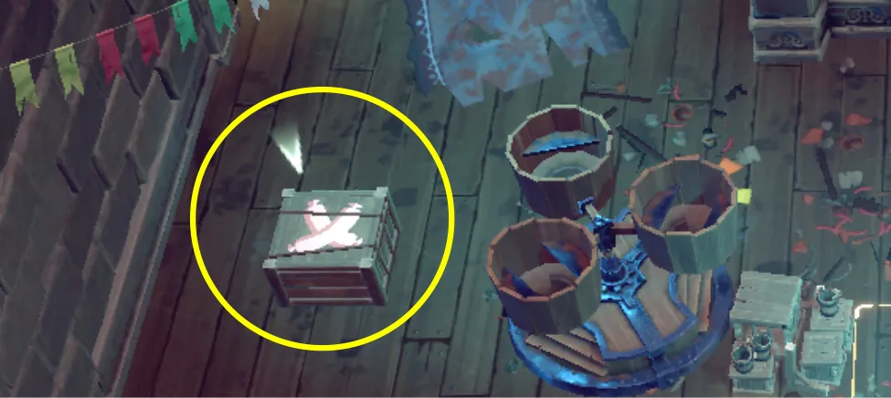 Следует иметь в виду, что в этом бою спустя два раунда к вашим врагам с каждым раундом будет подходить подкрепление. Поэтому вам необходимо уничтожить три ящика с сосисками, которые находятся в этом зале, нанеся по ним два удара или используя разрывную гранату. Уничтожение каждого ящика с сосисками отменяет появление одной единицы подкрепления.