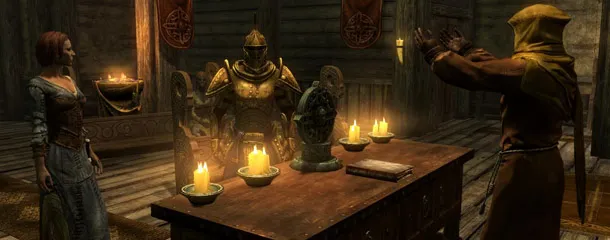 Брак в Скайриме начинается с деяний, говорил мне жрец, а деяния в Скайриме обычно включают в себя убийство людей. Убийства как таковые, возможно, нужны не всегда, но оказание услуги предполагаемому партнёру почти всегда включает в себя кучу битв. А я нашёл невесту, просто купив бивень мамонта и подарив его ей. Так тебе, Игра-Наполненная-Приключениями! Я женился без жертв! Если только не считать мамонта, которого я и не убивал. И мне ведь не придётся убивать кучу людей на обратном пути в Рифтен, правда?