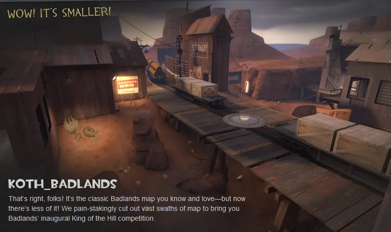 Классический Badlands, который вы знаете и любите, но теперь немножко меньше размером. Теперь Badlands станет поистине лучшей картой для "Короля горы"