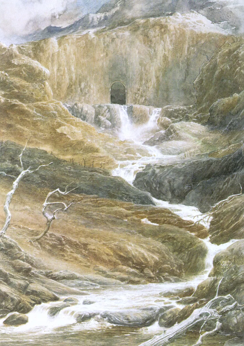 "В ту ночь гномы спали мало. Едва рассвело, они увидели из-за стены группу воинов. Воины медленно взбирались наверх. Скоро гномы разглядели вооруженных людей у озера и стрелков-эльфов. Те влезли на обломки скал и оказались на уровне водопада. И удивились же они, увидев перед собой водоем и вместо ворот - стену, сложенную из свежеобтесанных камней.