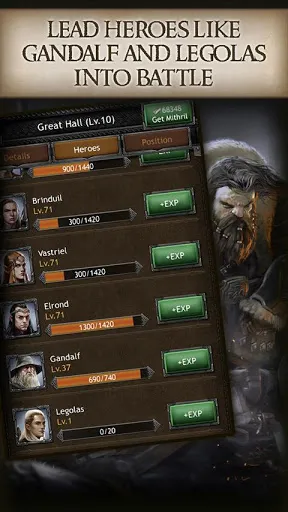 Любое здание можно и нужно улучшать до 10 уровня , так же как и технологии. До 9 лэвла за ресурсы , а вот на 10 лвл вам потребуется "Бригада Хоббитов" (меня по началу улыбнуло). Бригада эта покупается за мифрил ,или можно найти в сундуке ( раз в сутки бесплатная лотерея ). По мере изучения технологий и повышения уровней строений , вы сможете создавать более продвинутых юнитов , хранить больше ресов и т.д.