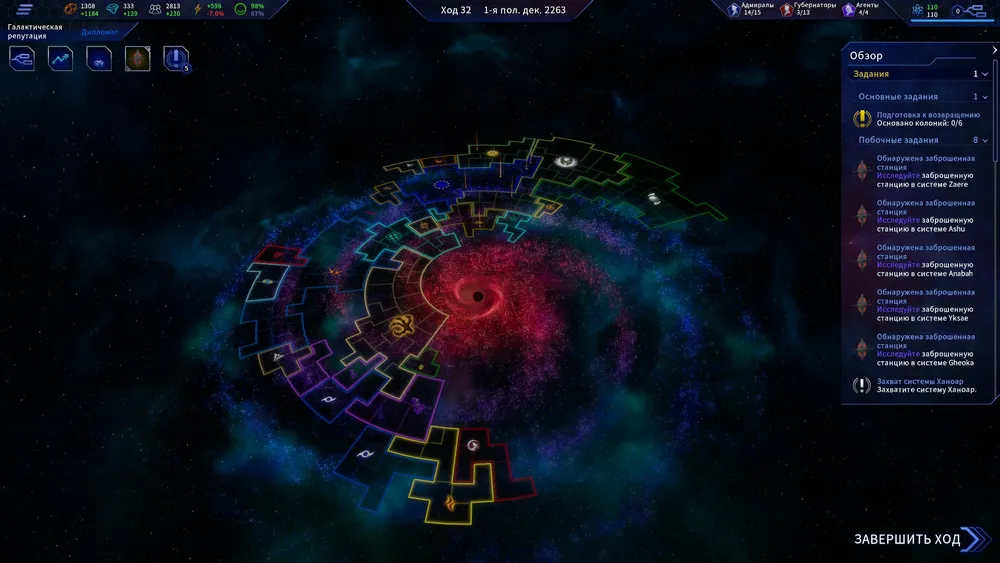 Кроме адмиралов среди наших специалистов будут работать также губернаторы и агенты. Губернаторы назначаются на планеты с гражданскими аванпостами или колониями, то есть на планеты хорошими условиями для жизни. Губернатор позволяет поддерживать порядок на планете и может давать бонусы к каким-то эффектам производительности. Если планета была захвачена у инопланетян, то можно выбирать: назначить в качестве губернатора местного (что логично влияет на лояльность населения) или человека (приписка у него будет — оккупант). В процессе своей работы они получают опыт и уровни, становятся более эффективными.