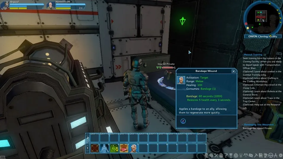 Чтобы завершить квест, кликаем на раненом и применяем способность Bandage Wound.