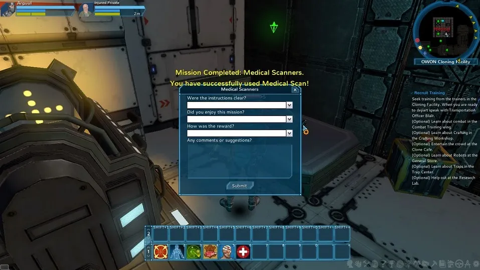 Для выполнения квеста применяем способность Medical Scan всё к тому же раненому. Надеюсь, теперь ему стало лучше.