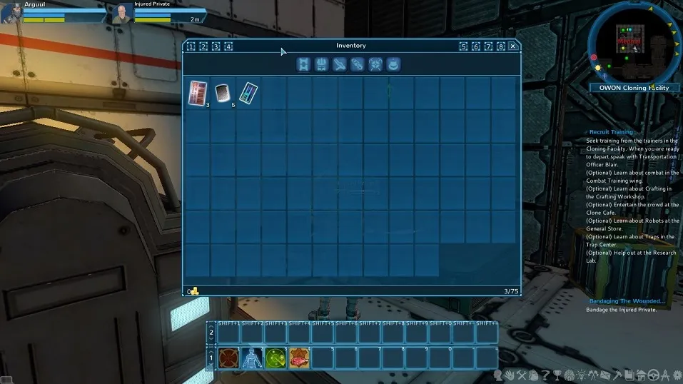 В инвентаре появляется карточка со способностью Медицинское сканирование (Medical Scan), которая позволяет проверить союзника на предмет наличия у него проблем со здоровьем и немного его подлечить. Способность действует с чуть большего расстояния, чем Bandage Wound, и не требует расходников, но для ее применения в руках должен быть медицинский сканер. Который тоже дает инструктор. Чтобы экипировать сканер, кликаем по нему дважды. И вот он уже у нас в руках: