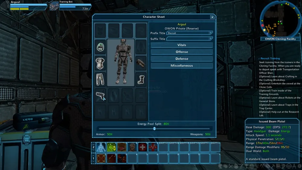 Physical Penetration: 5/15/0. Пробивная способность оружия. Показывает эффективность оружия против трех видов брони – легкой, средней и тяжелой. Пистолет, как видно, наиболее эффективен против средней брони (15) и наименее эффективен против тяжелой (0).