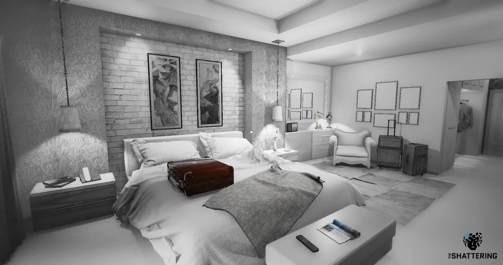 The Shattering – психологический приключенческий хоррор от первого лица, события происходят в белых аскетичных комнатах во сне главного персонажа, его пол и возраст не определён для отождествления игрока и героя. Одно то, что события происходят не в тёмных мрачных помещениях, уже претендует на оригинальность.