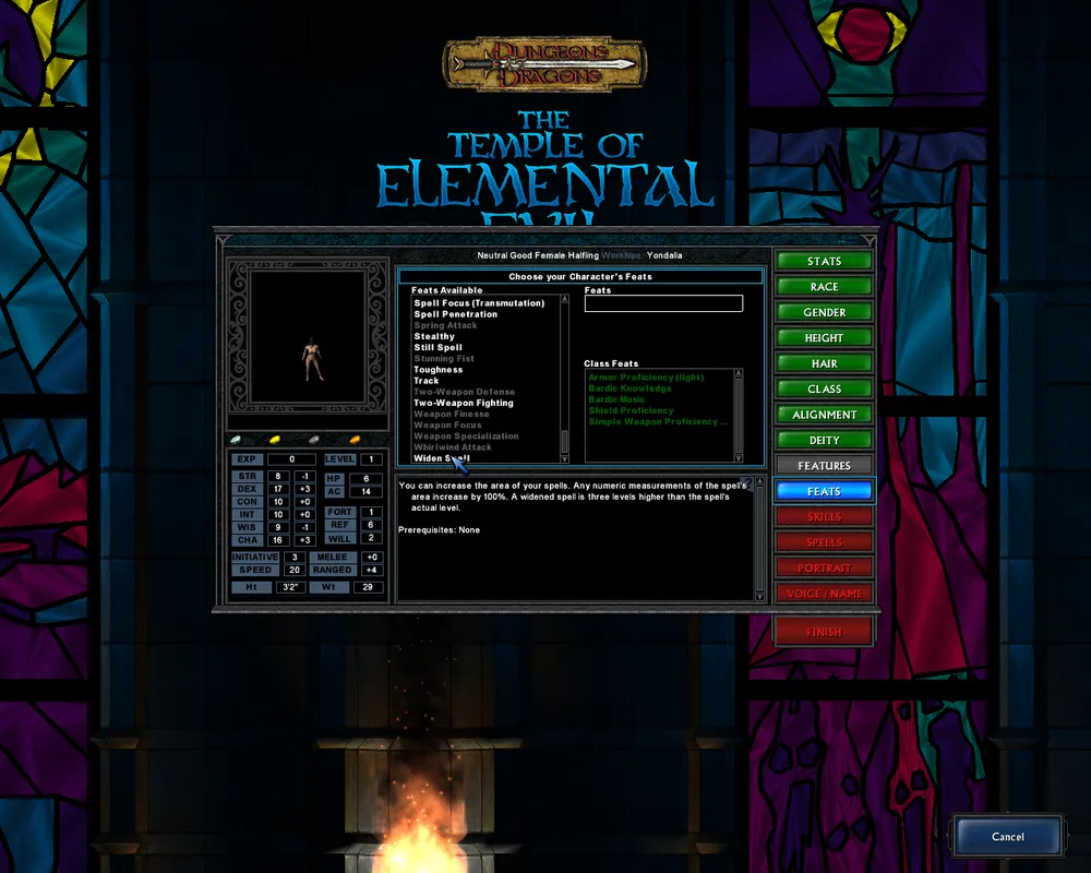Отличия от Neverwinter Nights отчетливо прослеживаются в меню создания персонажей. Оно не такое яркое и красочное – все выполнено строго текстом, а навыки и способности не обладает развернутым описанием. Зато мы можем получить информацию по каждому пункту, начиная от показателя атаки, заканчивая описанием работы инициативы. Этого в NWN мне не хватало, шестнадцать лет назад, когда я впервые сел за игру и стремительно бросил, не разобравшись с цифрами и непонятными параметрами (после Diablo, система D&D ощущается как геометрия для третьеклассника). В ToEE проще влиться новичкам.